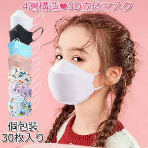 30枚 不織布マスク マスク 子供用 新色登場 使い捨て 四層構造 個包装 3Dマスク 4Dマスク 児童用マスク 魚型 魚形 ホコリ 子ども用 立体マスク 個別包装