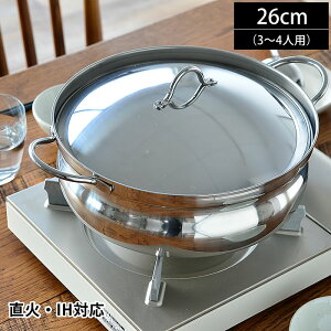 ステンレスでアルミをサンドした熱伝導がよい3層鋼のお鍋。ムラなく調理ができ美味しく作れます。商品名 燕三条 3層鋼土鍋風なべ 26cm。サイズ 約 W33.7×D26.3×H14.5cm 容量 約 4.6L 重量 約 1.06kg...