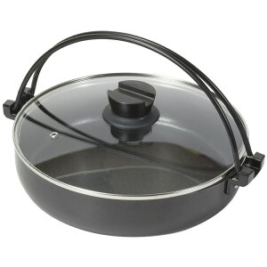 二食鍋 仕切り鍋 26cm 二色鍋 卓上鍋 両手鍋 しゃぶしゃぶ鍋 火鍋 調理鍋 万能鍋 土鍋風鍋 すきやき鍋 なべ ih対応 軽量 軽い ガラス蓋 蓋付き 汁切りお玉 あく取りお玉 卓上 鍋 ふた ガラス窓付...