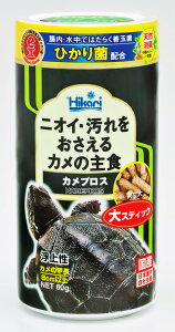 ニオイ・汚れをおさえるカメの主食(甲長8cm以上・大スティック)です。 【特長】 ●水の汚れを抑える ひかり菌と4種類のハーブエキスがカメの消化吸収をサポート。フンの排泄量が減り、さらにひかり菌が水中でフンを分解します。