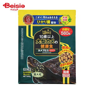 【商品説明】成長期を過ぎたカメに配慮した健康食。食べ易い粒サイズで食べかすが出にくい。ひかり菌配合で水汚れも抑制【仕様】●内容量:210g●超大粒●10歳以上の大型カメ●国産●原材料:フィッシュミール、小麦粉、かしこ、小麦胚