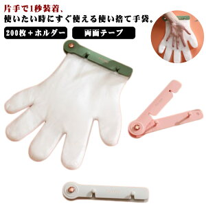 サッと装着!衛生的で便利な新習慣 片手で簡単!使い捨て手袋ホルダー付きセット(100枚入り) ? 片手で1秒装着!驚きの手軽さ 忙しいキッチンや掃除中でも片手でサッと装着! 専用ホルダーにセットすれば、手袋が1枚ずつ取り出せて清潔