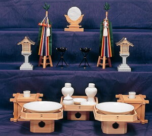 祖霊舎用神具セット(中)内容 神鏡(1ケ):中2.5寸 春日灯篭(1対):PC製5寸(電池式) 真榊(1対):三本足・小(35cm) セトモノセット(中)4寸 かがり火(1対):4寸 玉垣(1対):中 4寸 遠山三宝(3台):6寸...