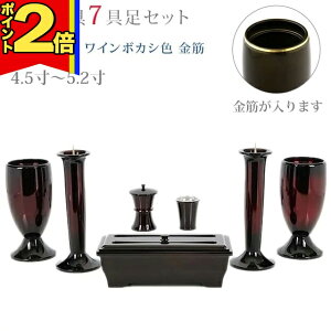 優型 ワインボカシ色 金筋 4.5寸〜5.2寸 7具足セット 商品説明 丸みを持った優し印象のフォルムに、美しい色合いが映える銅器の名産地「高岡」で造られた国産銅器仏具です。長香炉・ローソク立て×2個・花立て×2個・茶器・仏器の、7点セッ