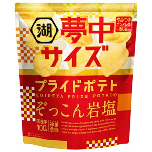 湖池屋 夢中サイズ プライドポテト ぞっこん岩塩 102g○リニューアル等により、パッケージ画像は予告なく変更されることがあります。お届けの商品と異なる場合がございますのでご了承ください。○口に入れた瞬間の岩塩の塩立ちが強化さ