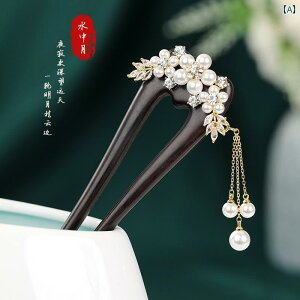 素材: 木 スタイル: レトロ.宮廷風 種類: 簪(かんざし) カラー: 単面《水中月パール花飾り簪》紫光黒檀.双面《水中月パール花飾り簪》紫光黒檀.双面《水中月》タッセルなし 黒檀木U字簪