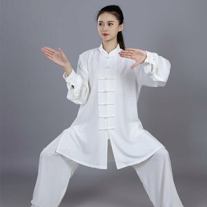 太極拳 服 レディース ヨガ 瞑想 運動 拳法 表演服 おしゃれ 動きやすい 上下セット パンツ 中国風 練習着 ゆったり 武道 白 シンプル 大きいサイズ