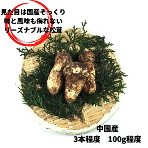 中国産 3本程度 1pc 100g程度国産松茸にこだわらない方にお勧めは、中国産の松茸。香り・歯ごたえはなかなかのもの。形に関しても、北米産の松茸とは違って、国産の松茸に似た形をしています。周りについた土や砂を落としてから調理し