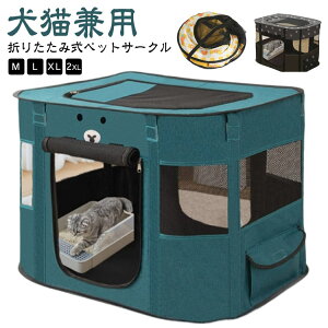 折りたたみ式ペットサークルM/L/XL/2XL犬猫兼用パット広がるくつろぎ空間メッシュサークル扉が開けたら固定できるマジックテープ付きて、開閉後は巻き上げ固定ができるので、邪魔に感じることもないです。大きな空間ペット用トイレ、ペッ