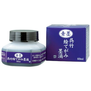 商品名 青墨 呉竹絵てがみ墨滴 品番 BA41-6 仕様 特長:さらっとした使い心地で澄んだ青みの墨色です。そのままでも、薄めて使っても美しい墨色が得られます。 ●容量:60ml ●商品サイズ:61×51×61mm ●外装サイズ:63...