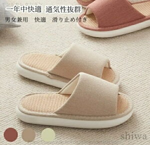 【送料無料&5倍ポイント】スリッパ 室内用 男女兼用 通気性抜群 夏用 冬用 快適 ルームシューズ 滑り止め付き 麻素材 中敷き クッション EVA底 軽量 抗菌 洗える 来客用 家庭用 3color ベージュ...
