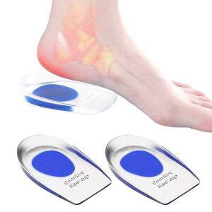 約Lサイズ:25-28CMの足対応しています、約長さ10.9*幅6.8*高さ1.8cm。 【二重構造】かかと中敷きには2種類の密度の素材を重ねて作ります。透明な部分には密度の低いシリコ...