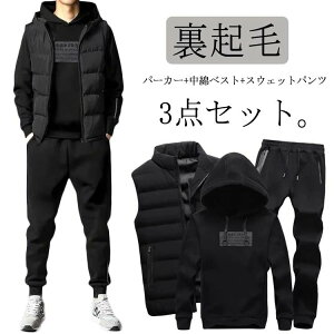 パーカー+中綿ベスト+スウェットパンツ 3点セット。柔らかな裏地で心地よくあったかい。肌触りが気持ちイイ抜群の着心地柔らかな肌触り,保温性も高く、秋冬シーズンにおすすめの一着です。普段使いは勿論、部屋着やスポーツにもオスス