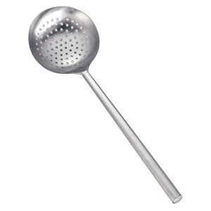 継ぎ目がないオールステンレス製の中華お玉■衛生的 継ぎ目がない一体成型なので汚れが詰まることがないので衛生的です。■滑りにくく、握りやすい 持ち手は滑り止めに加えて、表面をザラザラにするブラスト加工を施してあります。
