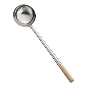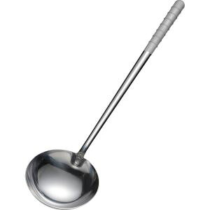【商品説明】柄と先端の丸い部分がまっすぐに取付けられた中華用の鉄製のお玉。すくったり、まぜたり、と様々な用途で使用できます。【仕様】●材質:鉄●生産地:日本(燕三条)●規格(mm):φ100×柄315●国内有数の金物産地・集積地