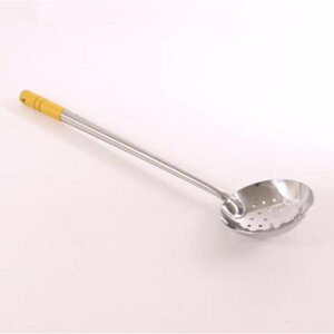 【ステンレス パイプ柄ワンピース穴明中華お玉 小】 ●サイズ:φ142mmx柄長349mm ■汚れを残さず洗いやすいオールステンレスの一体成型。 ■継ぎ目が無いので衛生的で使いやすい中華お玉です。 ■...