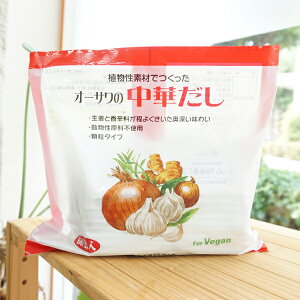 オーサワの中華だし(大徳用)は植物性素材でつくった中華だしの素 生姜と香辛料が程よくきいた奥深い味わい。・国産野菜を使用。・顆粒タイプ。・砂糖・動物性原料不使用。・化学調味料不使用。