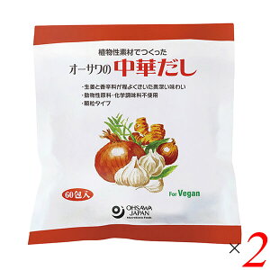 オーサワの中華だし(大徳用)は植物性素材でつくった中華だしの素 生姜と香辛料が程よくきいた奥深い味わい ・国産野菜を使用 ・顆粒タイプ ・砂糖・動物性原料不使用 ・化学調味料不使用 ・中華スープ、野菜炒め...