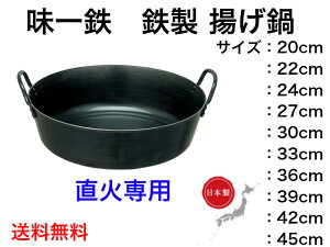 油温の変化が少ないのは、極厚底だから。 底厚は極厚板の3.2mm サイズ:20cm,22cm,24cm,27cm,30cm,33cm,36cm,39cm,42cm,45cm 本 体:鉄(黒鉄板) 加 工:スピニング 原産国:日本 ≪検...