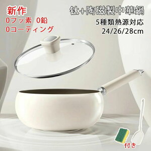 中華鍋 フライパン チタン陶磁鍋 チタン合金製鍋 片手 焦げ付かない ガス/IH対応 コーティングされていない ヘルシーポット ノンスティック 家庭用調理鍋 化学 無添加 くっつきにくい
