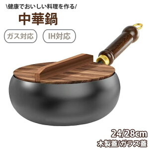 省エネ・ガス代節約焦げ付かない鉄製中華鍋24cm 28cm 蓋付き【優れた耐久性】絶妙な鉄素材は、耐摩耗性に優れているだけでなく、調理にも耐え、耐用年数が長い。丸い構造設計は効果的に熱を伝達し、調理効率を高めることができる...