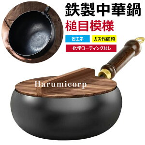 槌目模様 鉄製中華鍋 24 26 28cm 電磁調理器対応 IH調理可 木蓋付き 無塗装 高温炒め物専用 軽量設計 煮物/炒め物対応 焦げ付き防止 家庭用 小容量 一人暮らし 木柄仕上げ 家庭用調理器具