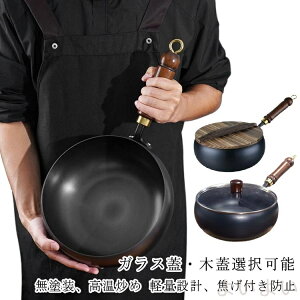 ガラス蓋・木蓋選択可能 無塗装、高温炒め 軽量設計、焦げ付き防止 家庭用 料理店用【健康的で環境に優しい】この純鉄製フライパンは、化学コーティングを一切使用せず、調理時に有害物質を発生させません。安全で環境に配慮した調理器
