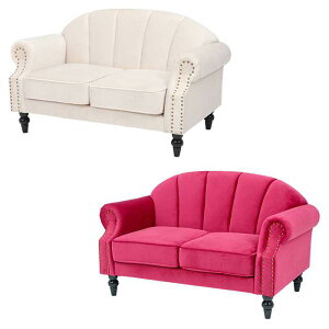 エレガントなデザインの2人掛けソファ。なめらかな生地張りが心地良い。(約)幅123×奥行73×高さ73×座面高42cm■脚部組立式■座面:Sバネ構造部材:天然木 張地:ポリエステル 中材:ウレタンフォ...