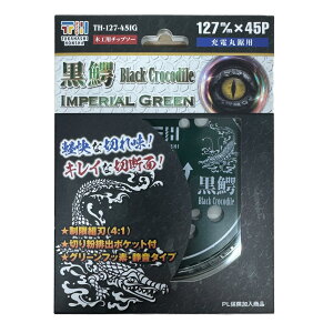 高橋本社の「黒鰐 インペリアルグリーン TH-127-45IG」は、127mm径・45P仕様の木工用チップソーです。高濃度グリーンフッ素コーティングにより、ヤニや接着剤の付着を軽減し、滑らかな切断を実現...