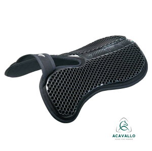 メモリーフォーム(低反発ウレタン)の特性と六角形のゲルのグリップ力とクッション性を組み合わせた新機能ゲルハーフパッドです。鞍側面の六角形のゲルはハチの巣構造になっており、人の体重を支えても形が崩れにくく、き甲部分は圧