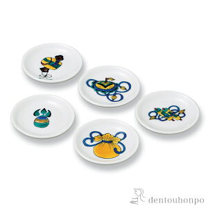 ■ 箸置 古九谷風五趣 5個セット 【 九谷焼 】 <仕様> ・材質:陶器 ・商品サイズ:前幅:4.4cm × 奥行:4cm ・箱:化粧箱。