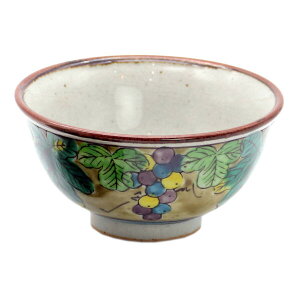 素材:陶器 サイズ:径11cm×高さ5.5cm 箱:紙箱 九谷焼を代表する色彩吉田屋によって描かれたぶどう柄の飯碗です。 吉田屋とは青、黄、緑、紫の四彩を用いて仕上げたものです。 ※色・柄の具合に一点一点個体差がございます...