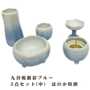 仏具/仏壇用品『宇野千代の仏具揃え【6点セット/陶製】九谷焼銀彩』日本香堂