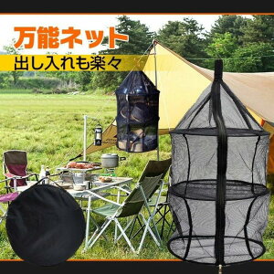 ネット干し網は折りたたみ式のデザインにより、干物を保管し、干します。 吊り下げ式なので、干す場所を探す必要はなく、風に飛ばされるのも心配 なし、多機能の万能干しネットです。ジッパーがあるため、防塵・虫の侵入を防ぐ機能性