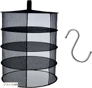 ドライフルーツ ネット 乾燥ネット 折りたたみ式 クローズド式 4層干し網 干し野菜、花、ハーブ芽植物、スモーク用食材 乾燥用 収納やすい ぶら下げ (ブラック, 直径60CM)