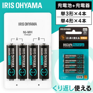 【製品特徴】■充電池は十分なくり返し回数に加え、より大きな容量を備えた、バランスのすぐれた単4形エネループ「スタンダードモデル BK-4MCD」の4本セット■電池を充電器に装填直後、電圧を自動診断し、1本ごとに最適な充電を行なう「
