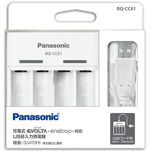 Panasonic パナソニック 単3形単4形ニッケル水素電池専用 USB入力充電器 タイマー充電器 ホワイト BQ-CC61 軽量 and コンパクトを実現 単3形1〜4本 / 単4形1〜4本の合わせて4本まで充電可能 充電式エボル...