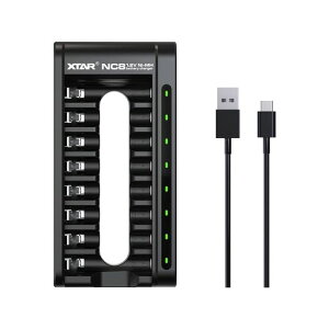 ?【自由充電:1〜8本対応、AA・AAA電池もこれ一台で!】1.2Vニッケル水素/ニカド充電池対応、独立チャンネルで電池を個別に管理し、種類・本数を問わず同時充電可能。最大8本まで一度に充電でき、省スペース設計で家庭や旅行に最適な単3単4充