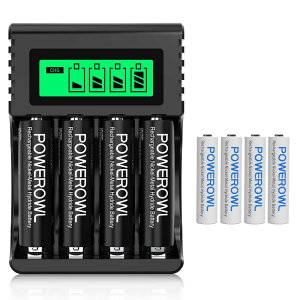 サイズ:充電器+8個単3/単4電池◆商品名:POWEROWL電池充電器LED急速充電器セット充電池 8本 大容量 耐久性 家庭用オフ ィス用 電池と充電器の組み合わせ (充電器+8個単3/単4電池)【充電池 充電器】単三単四充電電池兼...