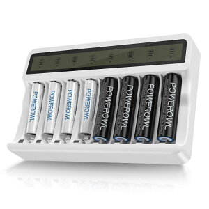 サイズ:充電器+4本単四電池+4本単三電池◆商品名:POWEROWL 充電式 単三 および 単四 電池、LCD急速充電器付き、大容量 ニッケル水素 電池- 4 x 2800mAh 単三 充電式電池 および 4 x 1000mAh 単四...