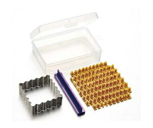 数字(0〜9)18個●記号(@%$&?.=+)20個●外寸(mm):抜型/56×54×H19●材質1:スタンプ台・文字パーツ:ABS樹脂●材質2:抜型:18-8ステンレス