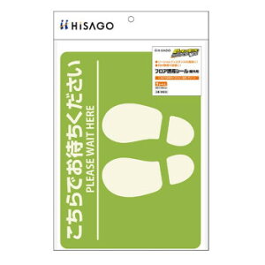 [商品名]ヒサゴ フロア誘導シール 屋外用 こちらでお待ちください 四角 グリーン SR036代引き不可商品です。代金引換以外のお支払方法をお選びくださいませ。屋外で使えるフロア誘導シールです。屋外のアスファルトや、コンクリート面のほ