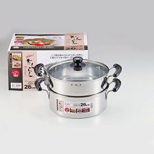 特徴■煮物・茹で物に■一度温まったら冷めにくいステンレスの鍋は、煮物・茹で物調理に最適です。■水丈夫で変形しにくく、お手入れもしやすいステンレス製のお鍋は、長く使えて頼りになります。■2段でも、下鍋単体でも使用でき、便