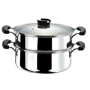 をステンレス鋼ではさんだ厚底の3層構造で、こげつきにくく、保温力に優れている。 【美食の食器】:蒸し器セットには、断熱性と熱傷防止、滑り止め、安全なハンドルが特徴で。本体/ステンレス鋼、取っ手:フェノール樹脂...