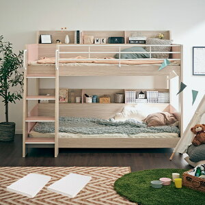 宮棚付き 2段ベッド 二段ベッド はしご 梯子 すのこ スノコベッド 子供部屋 キッズルーム キッズベッド 子供用ベット 大人用ベッド 木製ベッド 木製ベット ディスプレイ 絵本棚。