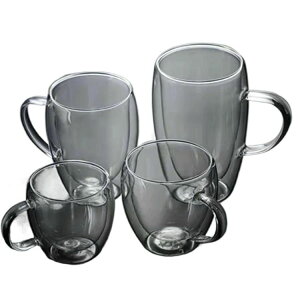 ガラスが二重構造で作られているので熱いものは熱く、冷たいものは冷たく保つことが出来、どの季節どのシーンでも活躍するマグカップ2個セット。ハンドルつき、耐熱ガラス製マグのお洒落さはそのままに「持った時の熱さ」を解消してい