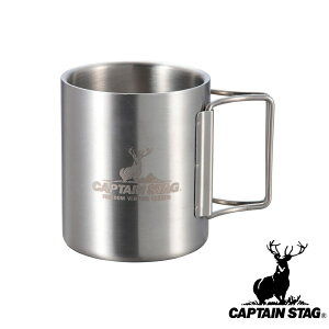 キャプテンスタッグ(CAPTAIN STAG) アウトドア コップ マグカップ マグ カップ タンブラー 350ml ダブルステンレス 中空二重構造 折りたたみハンドル ステンレス製 NEWフリーダム UH-...