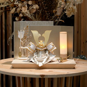 華やかなお節句を迎えるのに最適な、ホワイトゴールドのおしゃれなコンパクトサイズのアクリル兜ケースは、和室・洋室問わずどんなお部屋にも合わせやすいお飾りです。