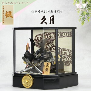 ★サイズ:間口30cm×奥行23cm×高さ30cm ★今、注目のブラック色を基調とした力強い雰囲気がおすすめの新作兜飾りです。 ■ケース正面には家紋プレートが入るサービス付きです。 ※家紋は、同封の申