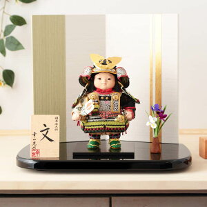サイズ:間口34×奥行25.5×高さ30(cm)(社)日本人形協会認定 優良店鎧着若大将 文 黒小札 緑裾濃威商品番号:h055-mi-koi-5600【2026年度新作五月人形】幸一光作 子供大将幸一光作の子供大将飾り「文」です...
